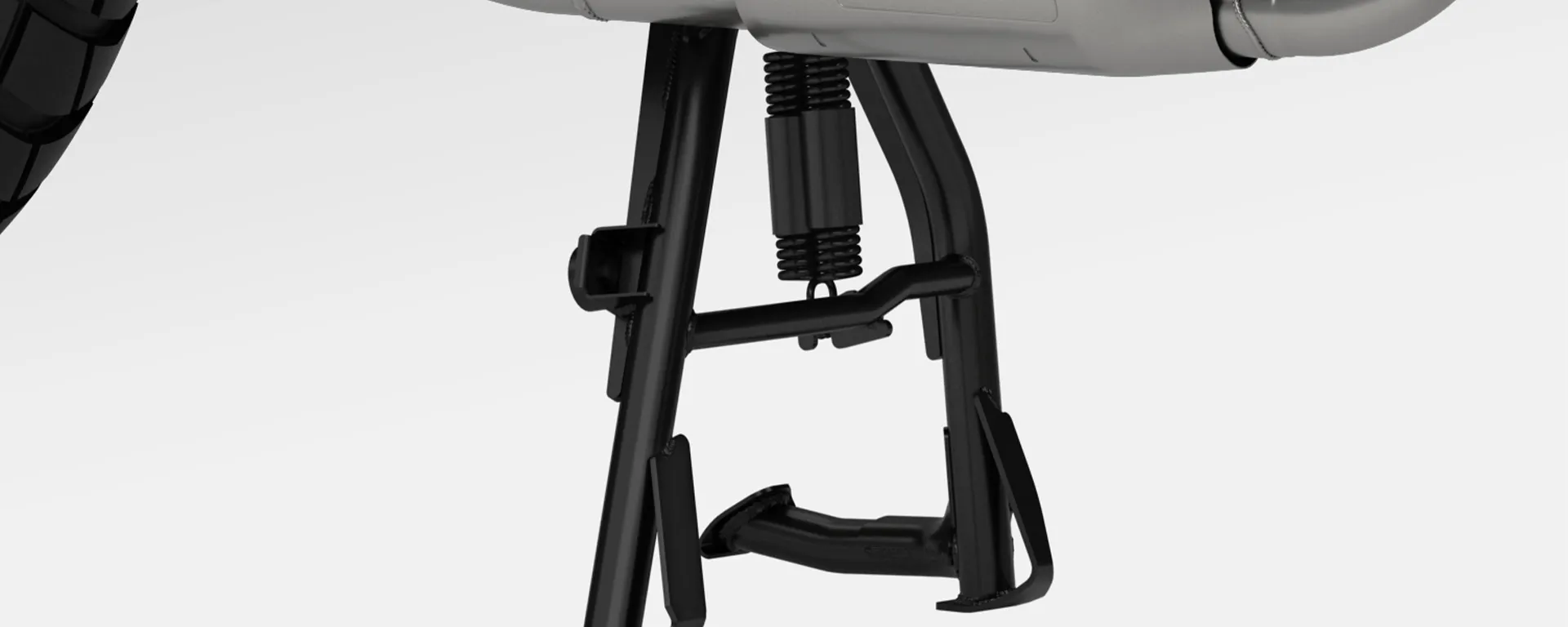 O cavalete central permite estacionar a moto com mais segurança em diferentes tipos de superfície; também é muito útil para manutenção ou paradas prolongadas.